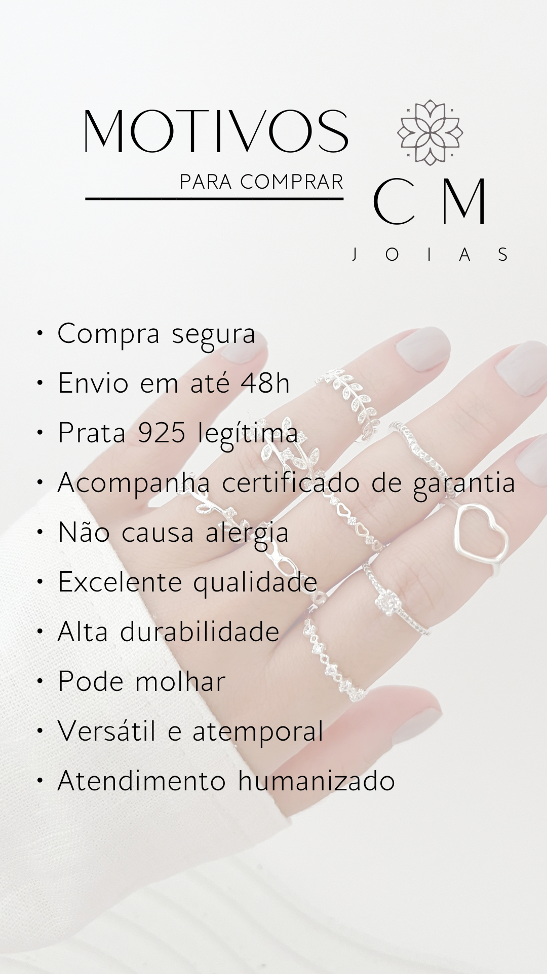 Benefícios da prata 925: É um metal nobre e precioso, sendo assim considerada uma JOIA. Além disso é atemporal, versátil, não causa alergia, pode molhar e se cuidada da maneira correta, pode durar a vida toda! Tudo de bom, né?