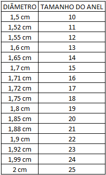 • Para medir o diâmetro do seu anel posicione a régua corretamente, começando na marcação 0, no início do aro e veja quantos centímetros e milímetros deram;